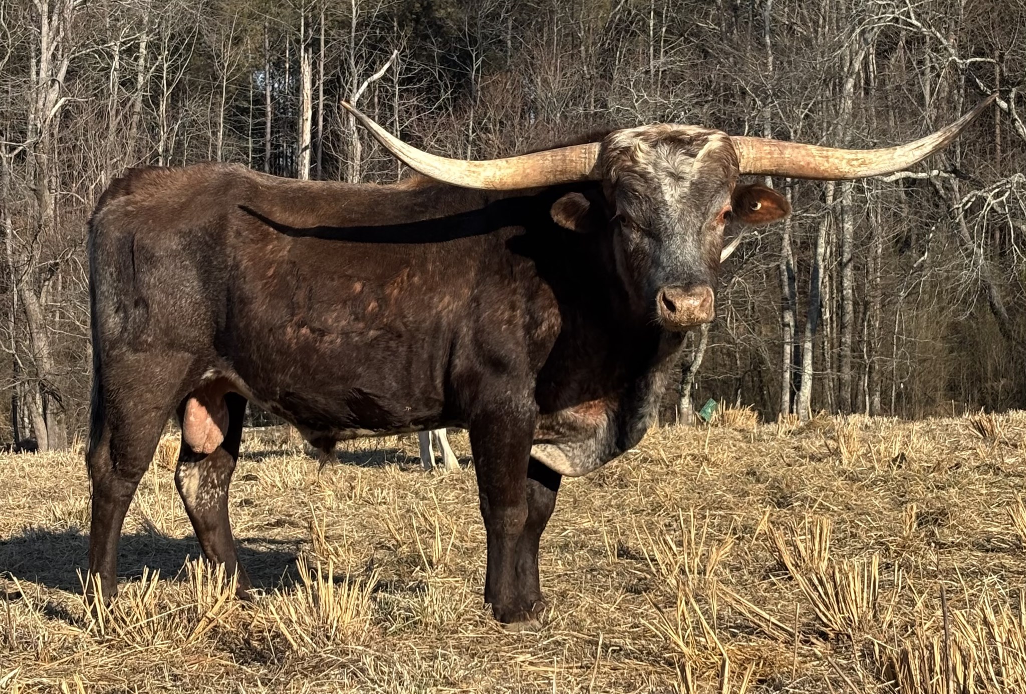 Thank you Hicks Longhorns! We are excited to develop this outstanding pedigreed young bull. An own son of the well-known WS Hydro, whose influence is being stamped in the Hicks' herd. On the maternal side, his dam is a Ruckus granddaughter of the great Delta Dotty. This bull's full sister is none other than Hicks EL Sun Shine, who is over 93 inches of twisty horn as a 6yr old. Now look at the conformation of this young bull, and see why we are excited about his future!
